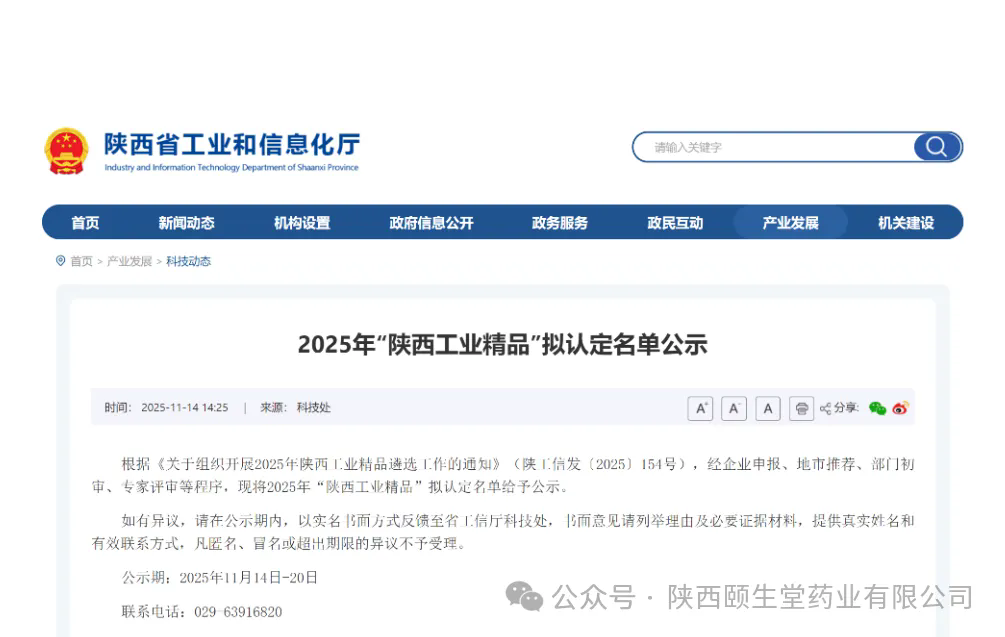 近日,陜西省工業(yè)和信息化廳正式公布2025年“陜西工業(yè)精品”名單,我公司生產的“維生素B2片”成功入選,這是繼“鹽酸氟桂利嗪膠囊、谷維素片”之后再度斬獲省級重要榮譽。